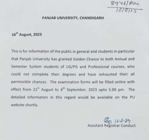 Punjab University has given golden chances to students who have could not complete their degrees.