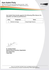 Punjab Finance Minister Harpal Singh Cheema has been appointed as the election in-charge for the Jalandhar Lok Sabha by-election.’