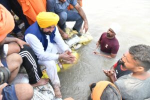 The Chief Minister ferried the boat and went amongst the masses to inspect the ongoing work on plugging the breach that had took place in the wee hours of Monday. He appreciated the exemplary work done by volunteers led by eminent environmentalists and district administration to plug this breach on war footing. Bhagwant Mann said that no stone will be left unturned for bailing out the people in this hour of crisis.
