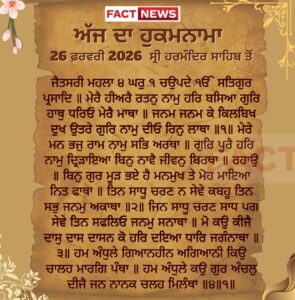 ਅੱਜ ਦਾ ਹੁਕਮਨਾਮਾ, ਸ੍ਰੀ ਦਰਬਾਰ ਸਾਹਿਬ, ਅੰਮ੍ਰਿਤਸਰ (26 ਫ਼ਰਵਰੀ 2026)