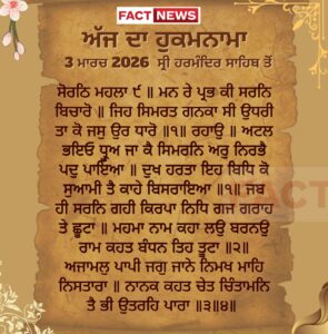 ਅੱਜ ਦਾ ਹੁਕਮਨਾਮਾ, ਸ੍ਰੀ ਦਰਬਾਰ ਸਾਹਿਬ, ਅੰਮ੍ਰਿਤਸਰ (3 ਮਾਰਚ 2026)