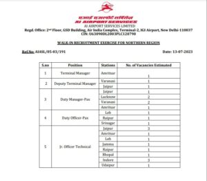 The AI Airport Services has announced walk-in interviews for many including Amritsar, Srinagar, Jaipur and Leh.