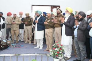 The ADGP accompanied by Inspector General of Police (IGP) Jalandhar Range Gursharan Singh Sandhu was here to attend the Antim Ardas Bhog Ceremony of the Martyr held at Gurdwara Singh Sabha Sahib in village Kotli Gajran, Shahkot.